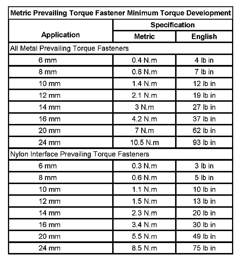 * The fastener develops the specified minimum torque against its counterpart prior to the fastener seating