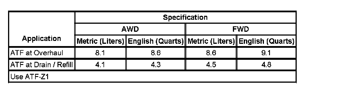 Fluid Capacity Specifications: