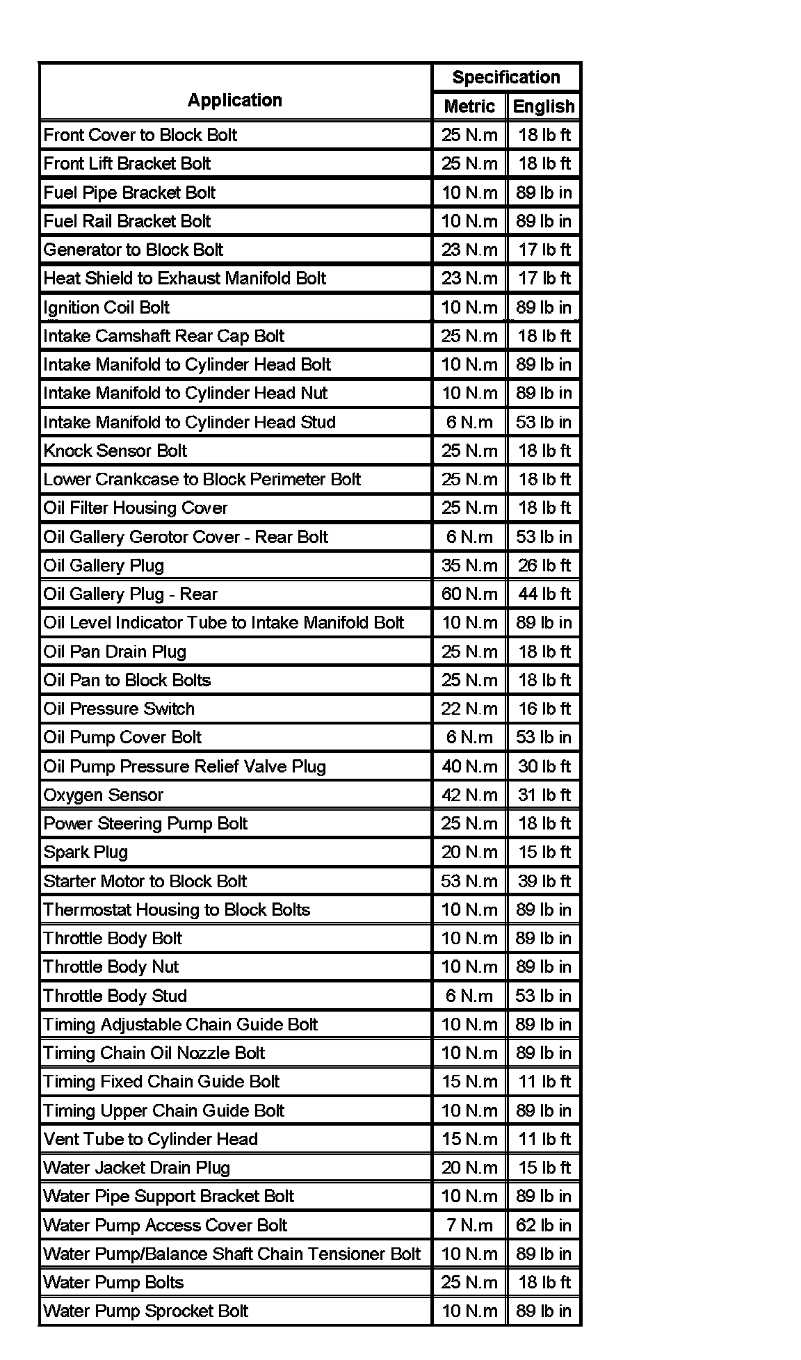 Fastener Tightening Specifications (Part 1):