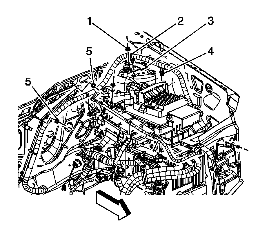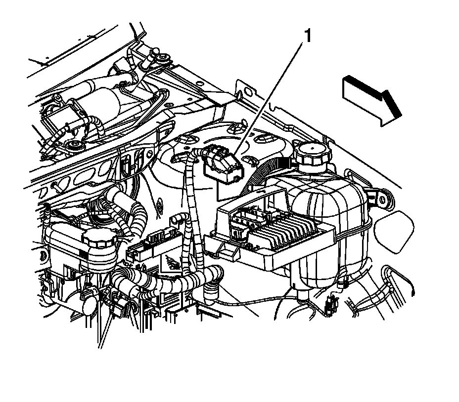7. Remove the ECM bracket (1) from the battery hold down bracket.