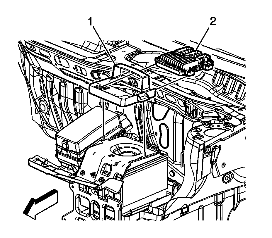 2. Install the ECM bracket (1) to the battery hold down bracket.