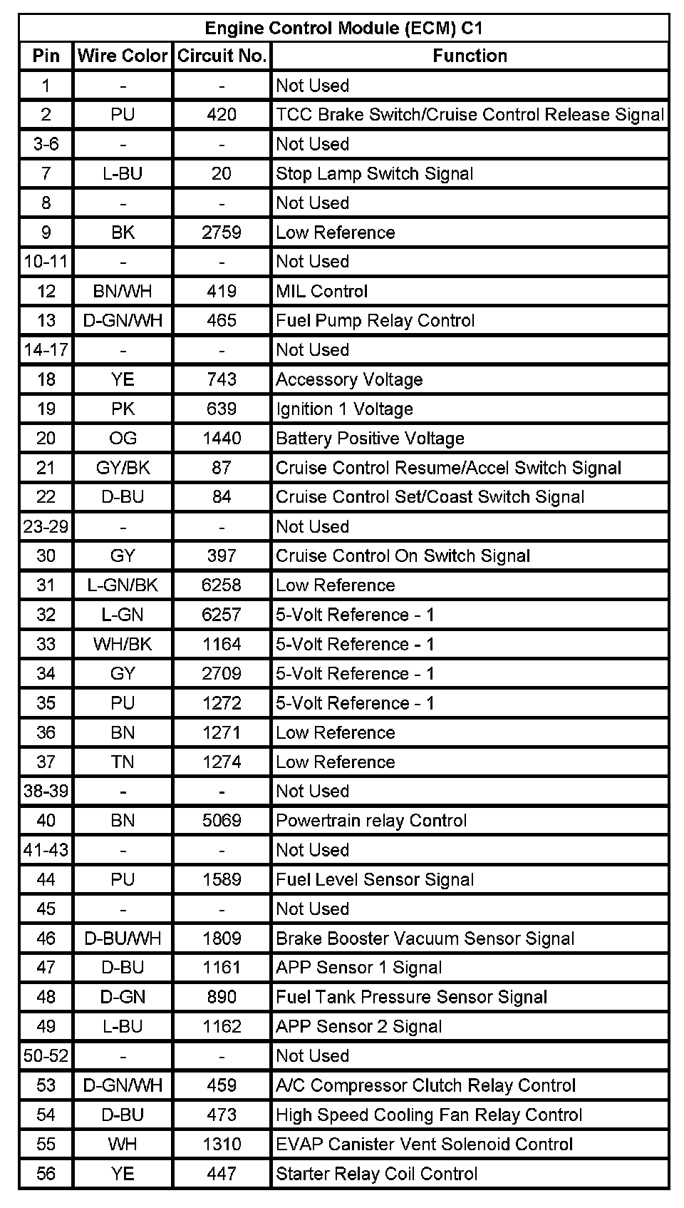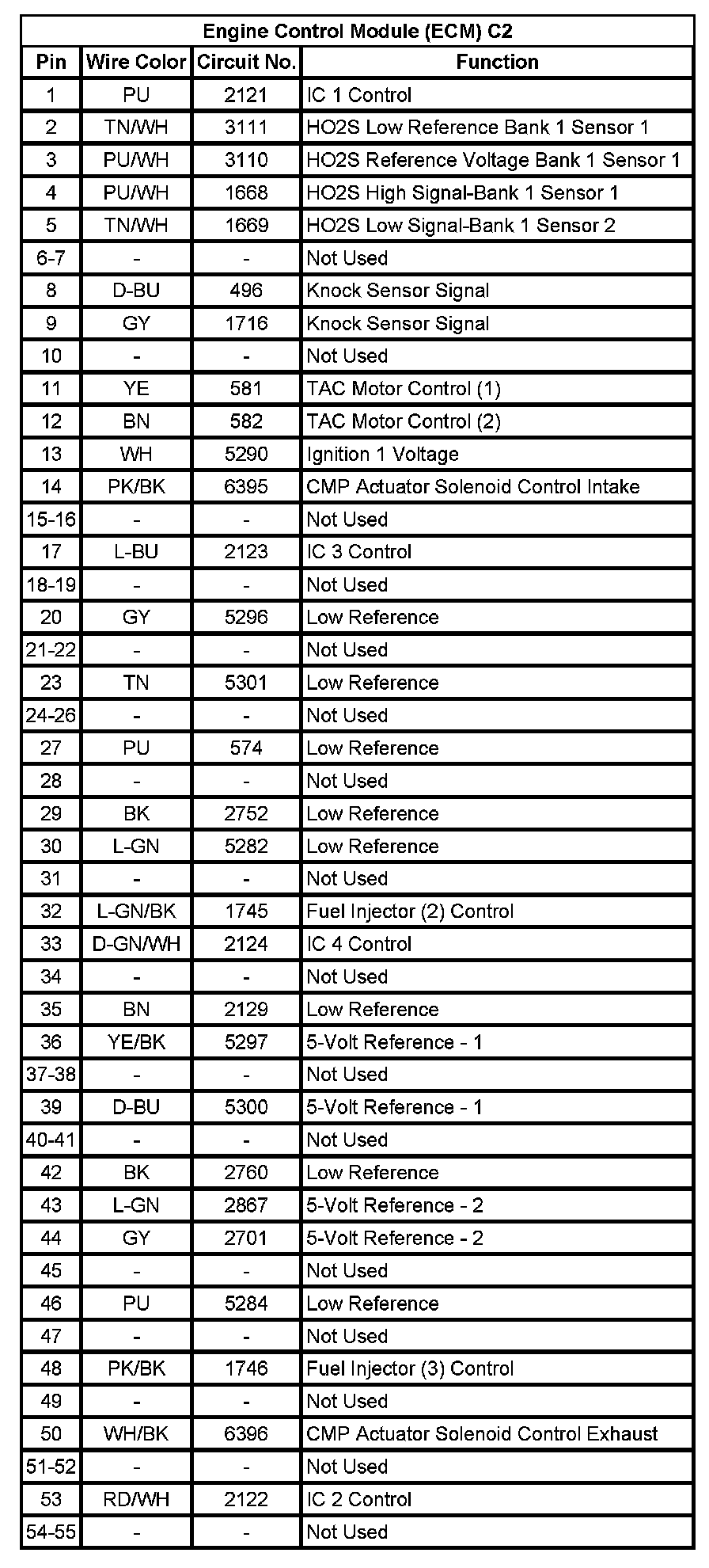 Engine Control Module (ECM) C2 (Pin 1 To 55):