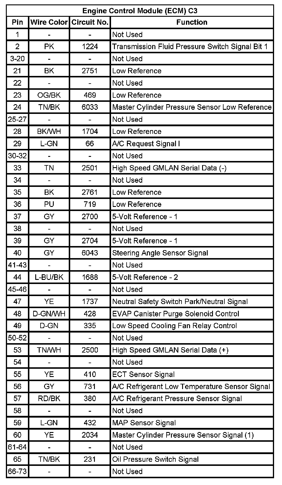 Engine Control Module (ECM) C2 (Pin 56 To 73):