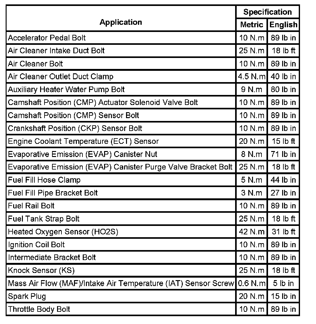 Fastener Tightening Specifications