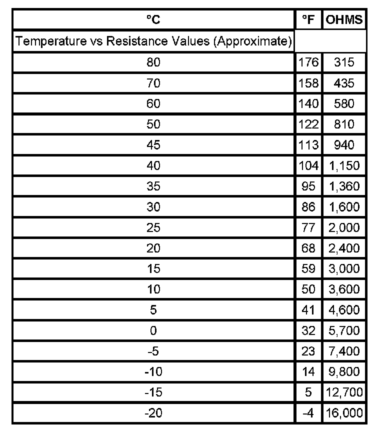 Temperature Versus Resistance - Engine Coolant Temperature Sensor