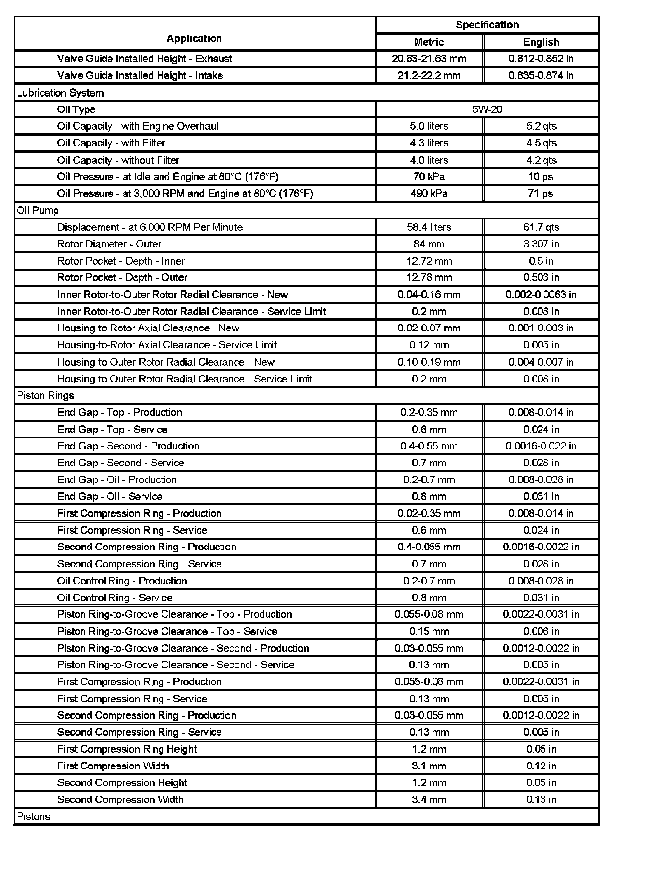 Engine Mechanical Specifications (Part 5):