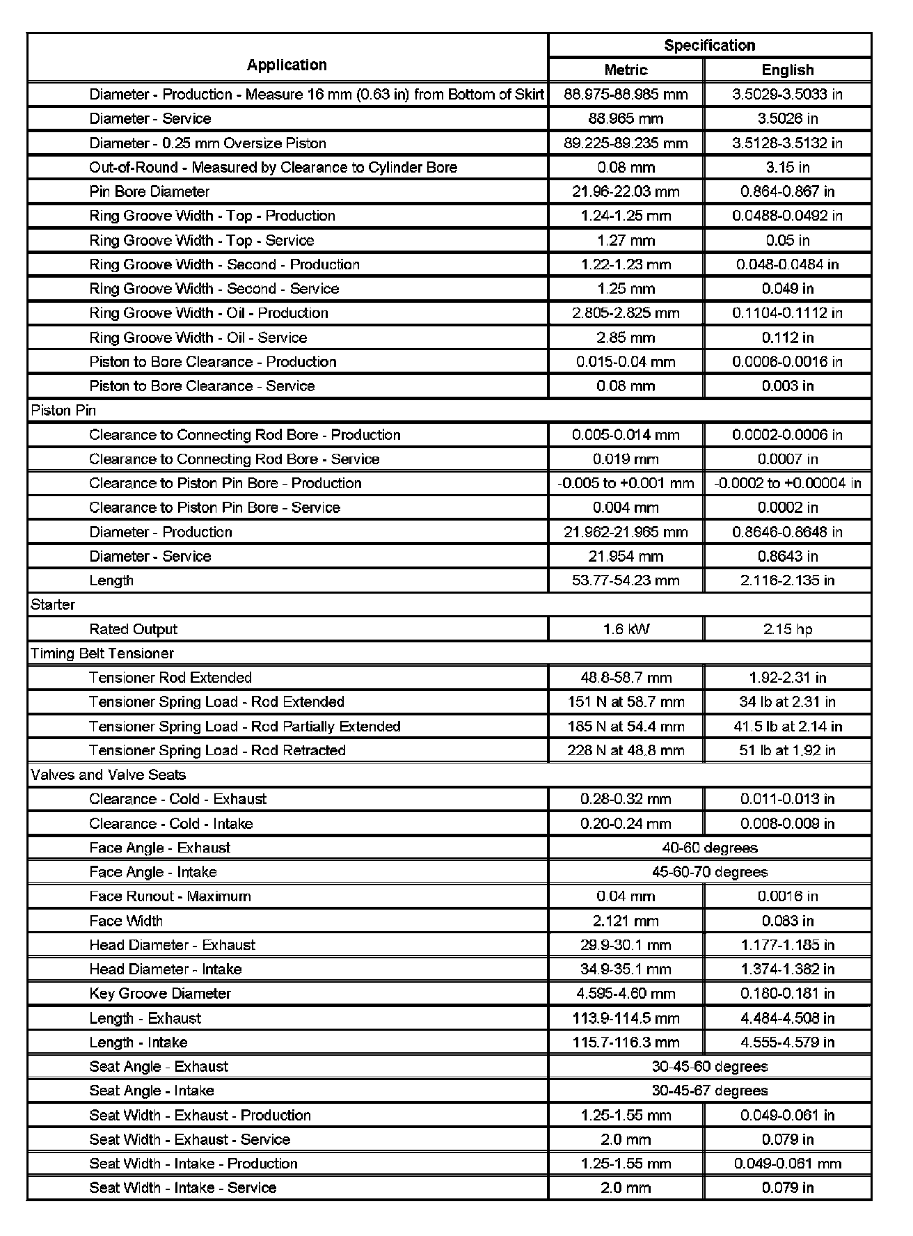 Engine Mechanical Specifications (Part 2):