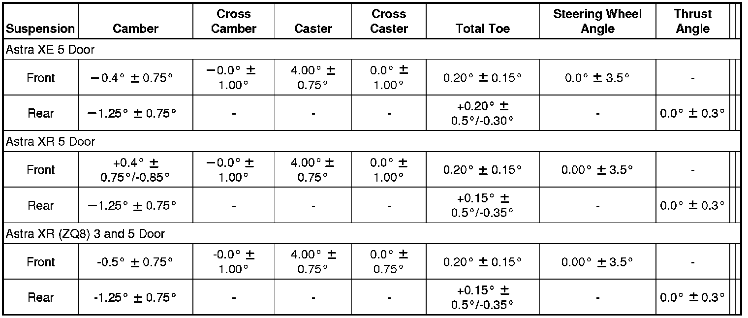 Wheel Alignment Specifications