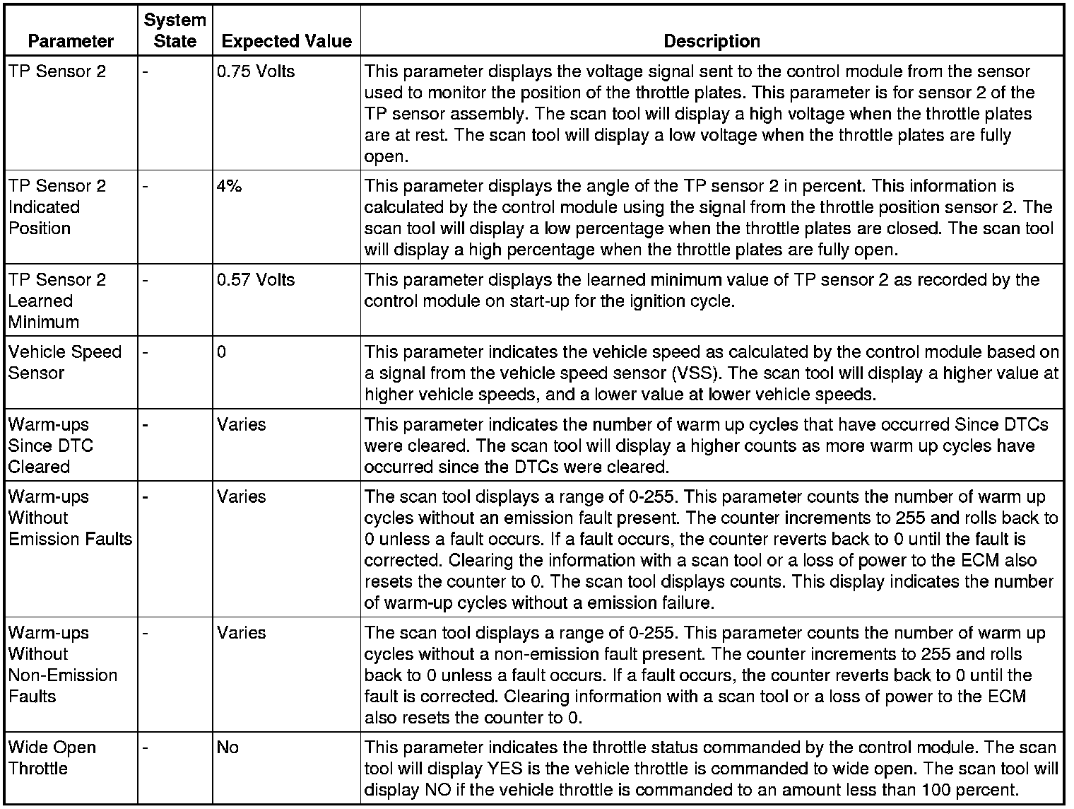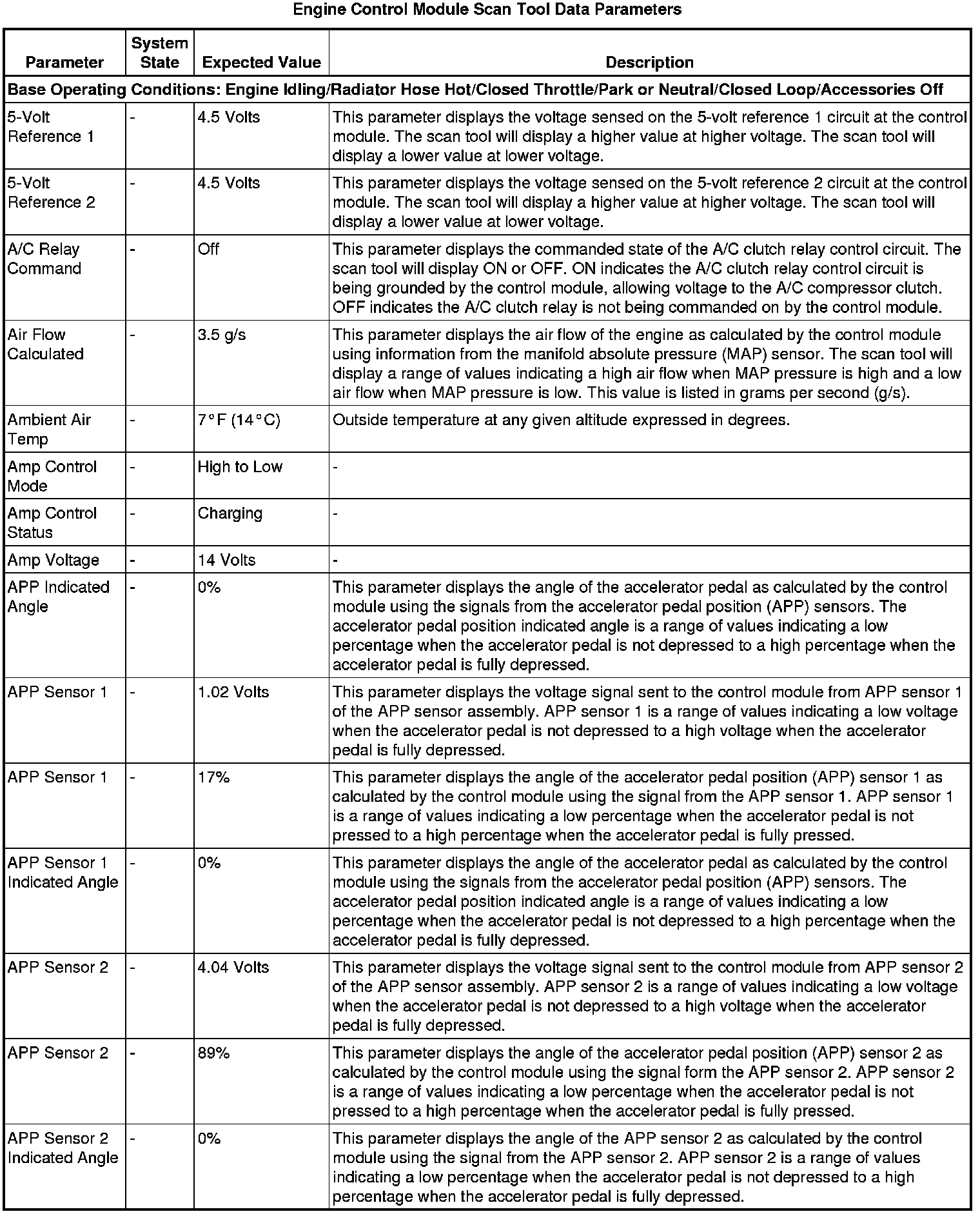 Only the parameters listed below are referenced in this service manual for use in diagnosis. If all values are within the typical range described below, refer to Symptoms - Engine Controls (- Symptoms - Engine Controls) for diagnosis.