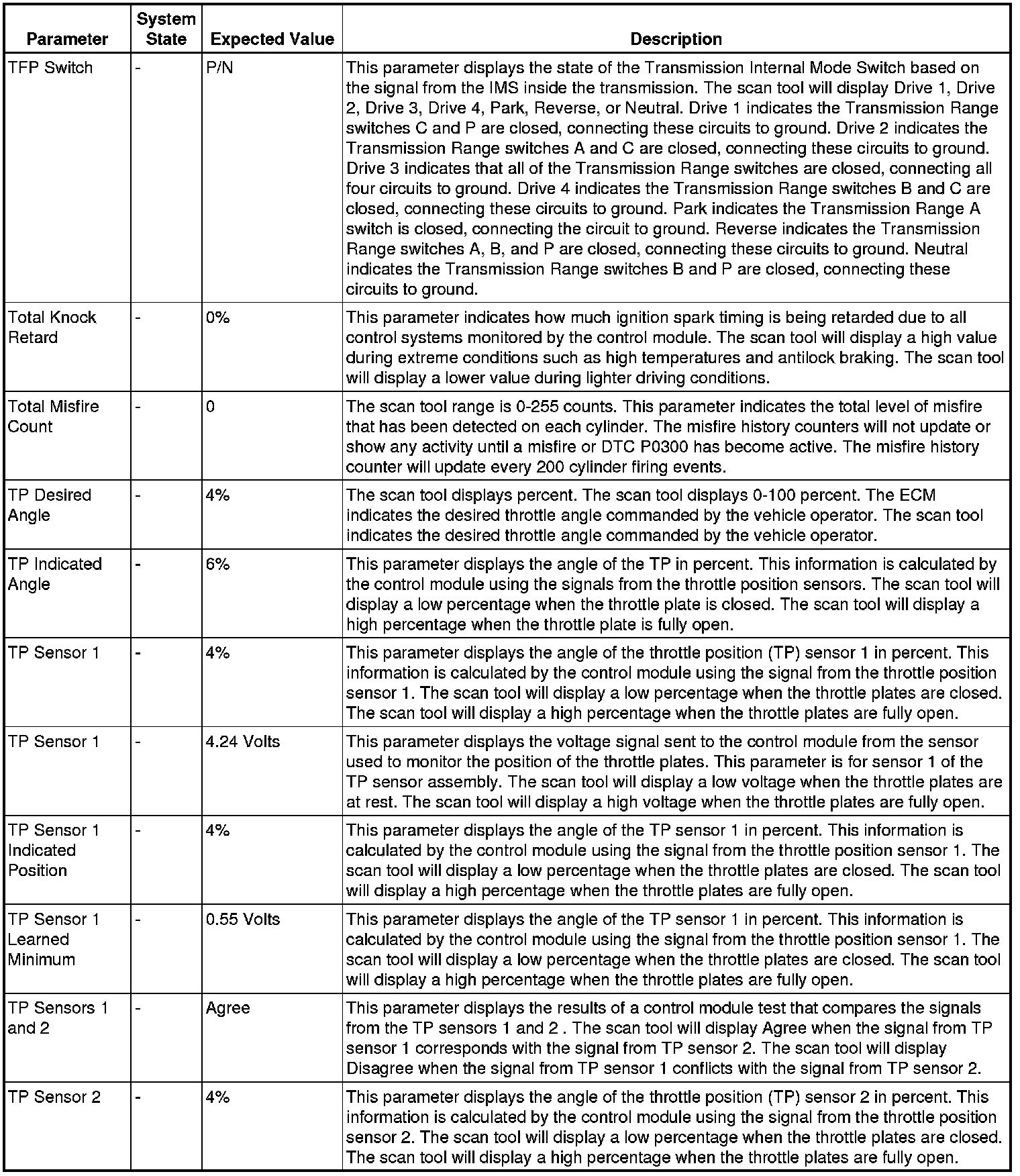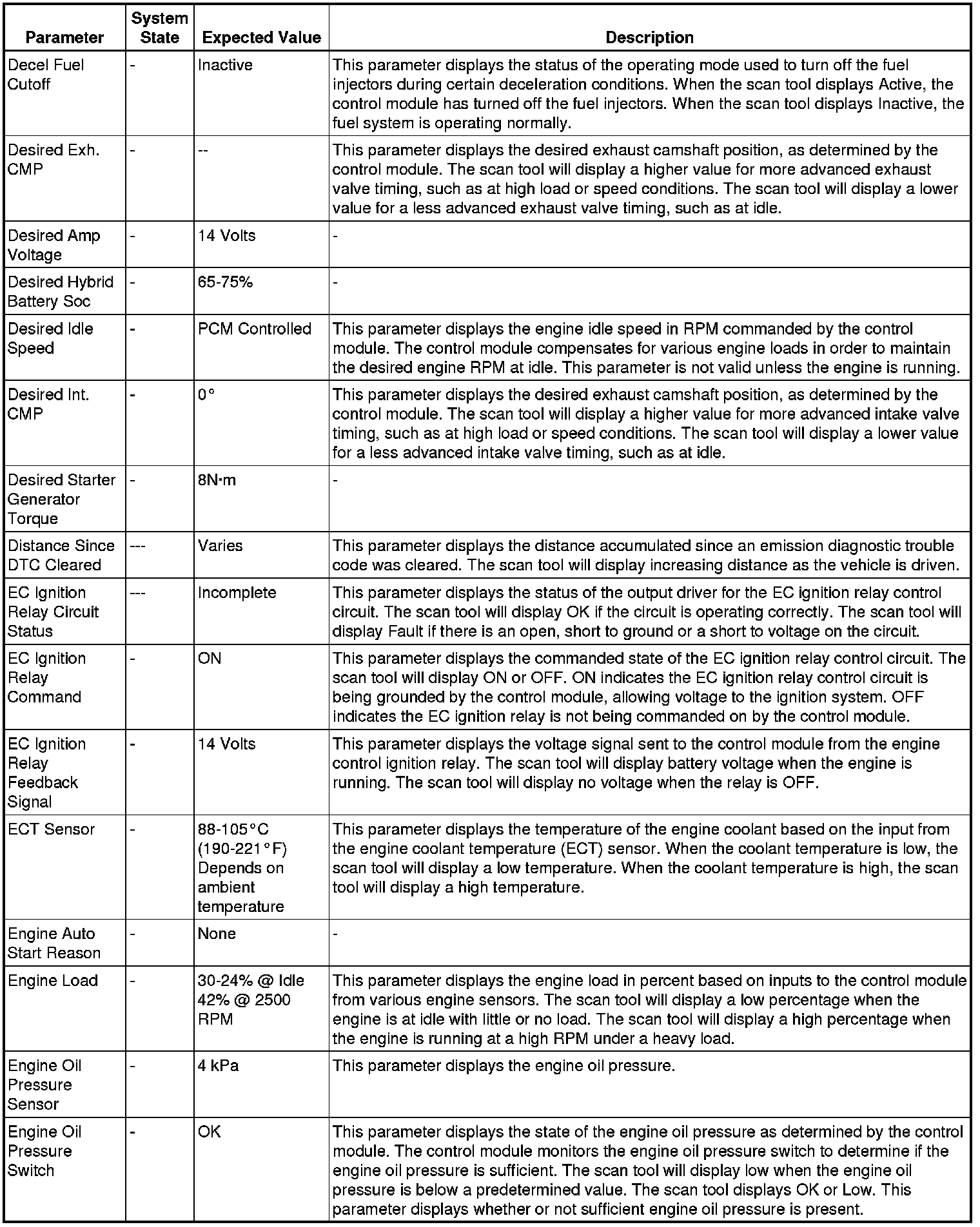 The Engine Scan Tool Data List contains all engine related parameters that are available on the scan tool. The list is arranged in alphabetical order.