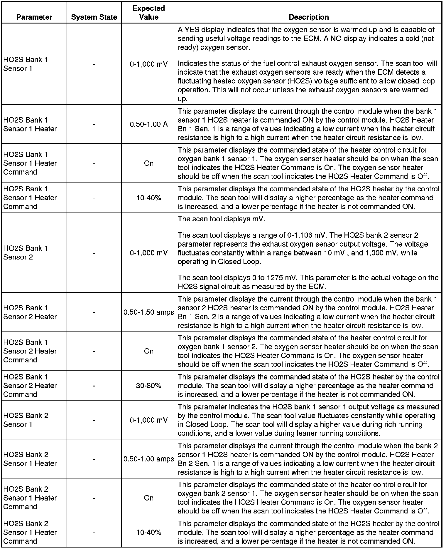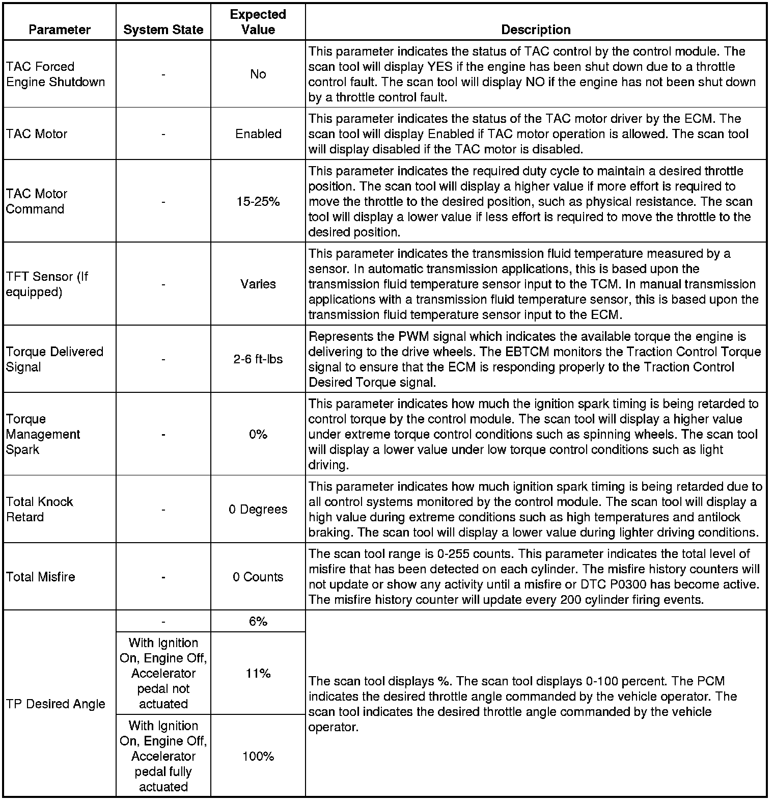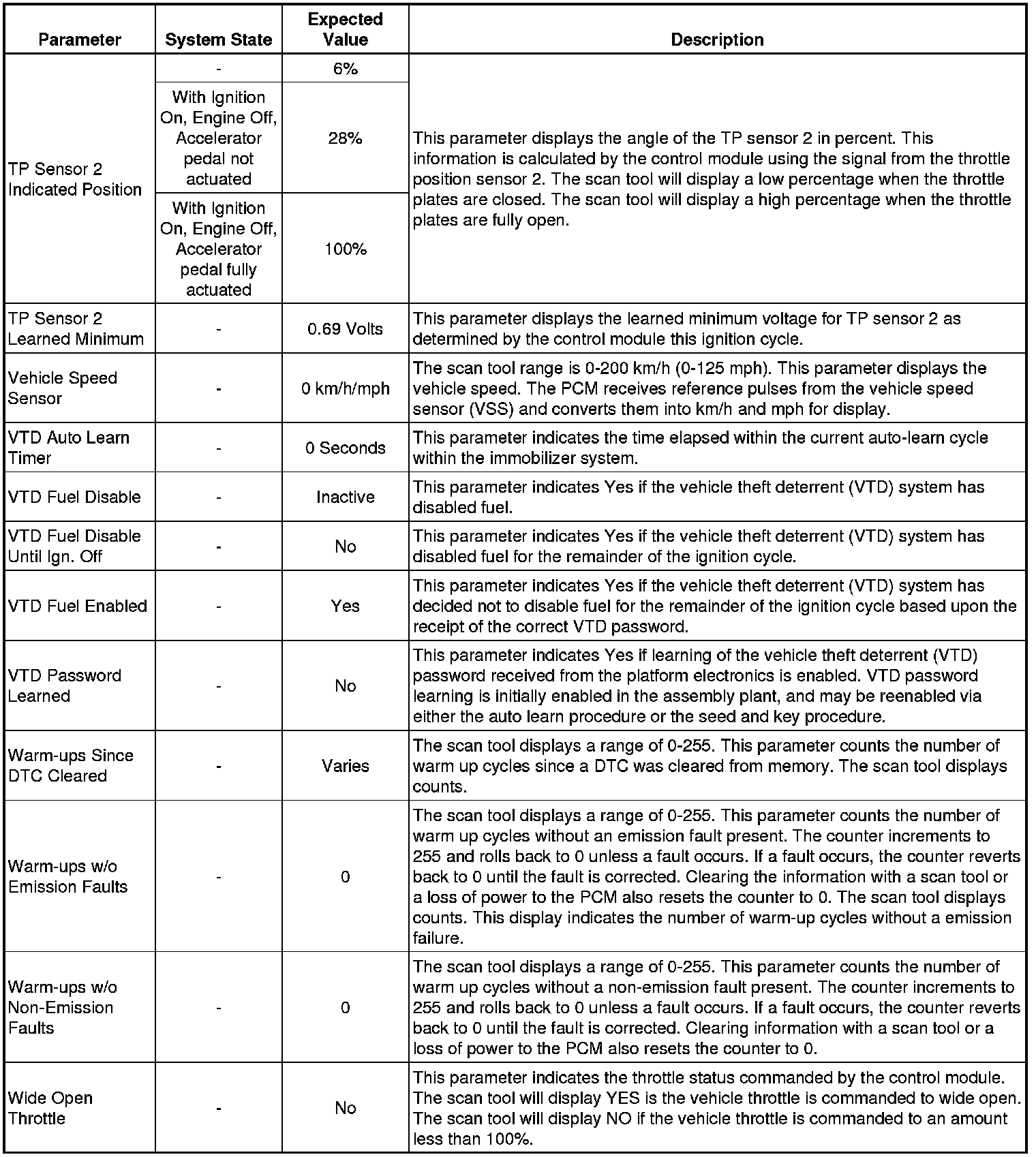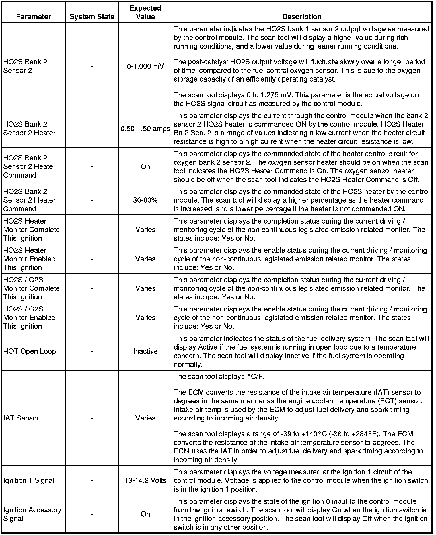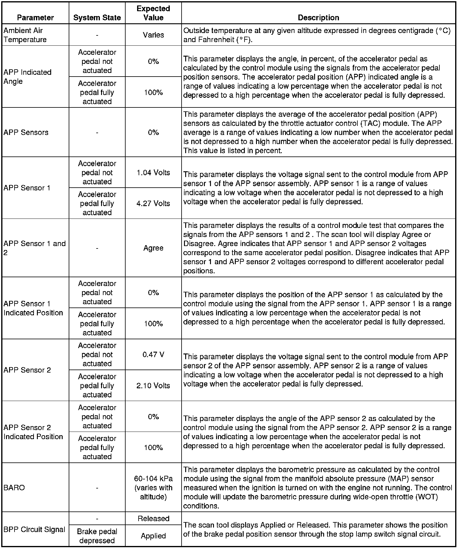 Only the parameters listed below are referenced in this service manual for use in diagnosis. If all values are within the typical range described below, refer to Symptoms - Engine Controls (- Symptoms - Engine Controls) for diagnosis.