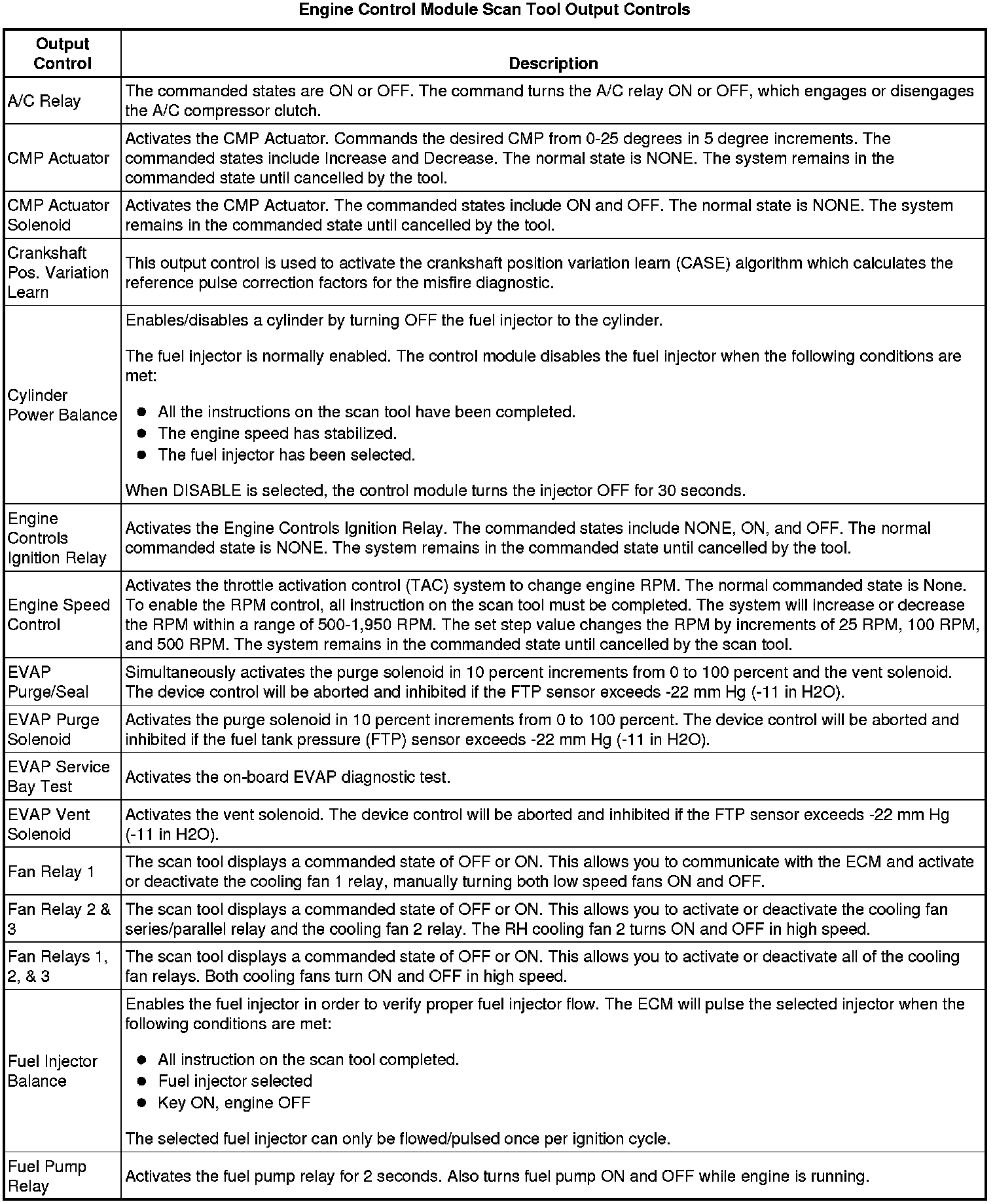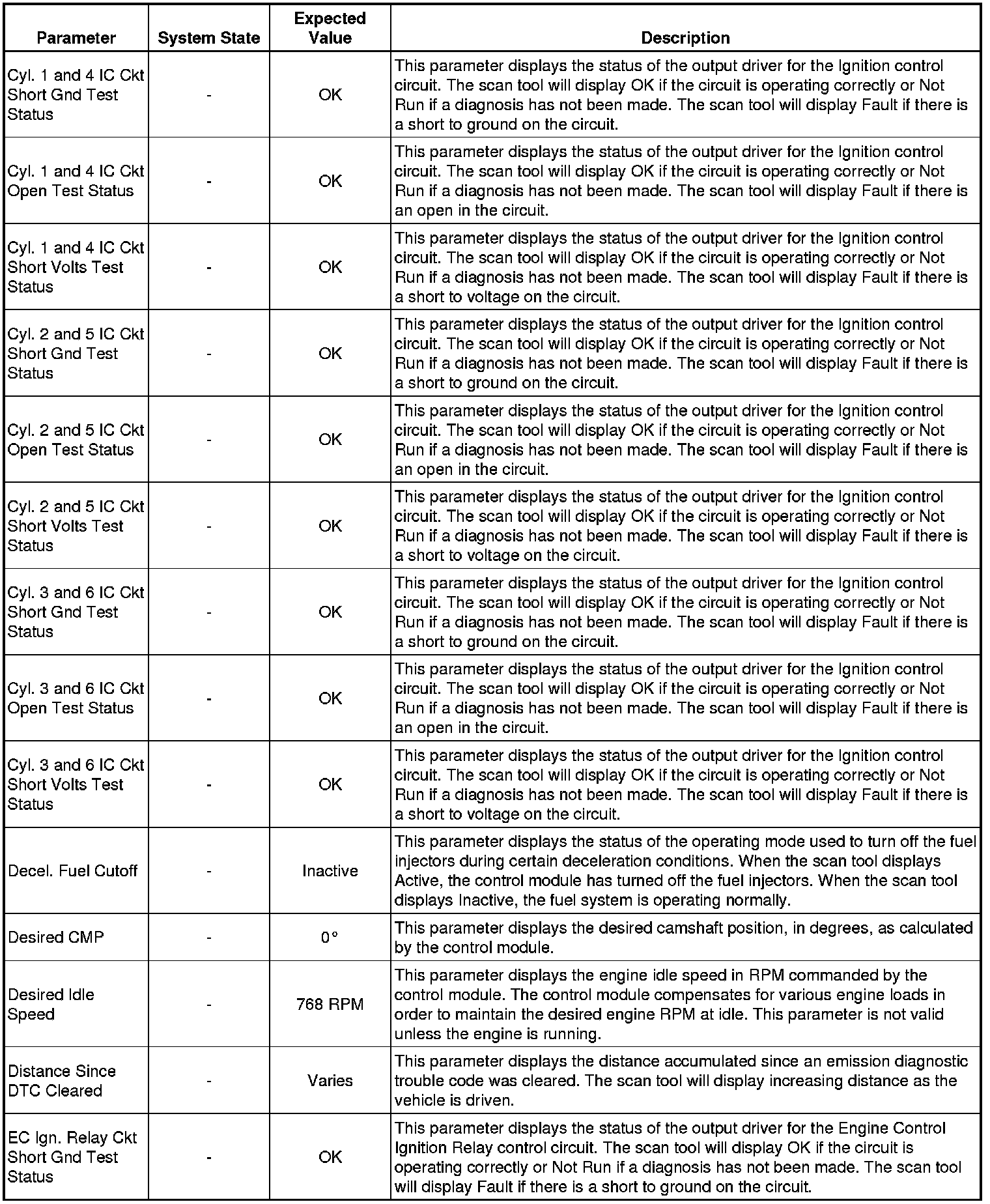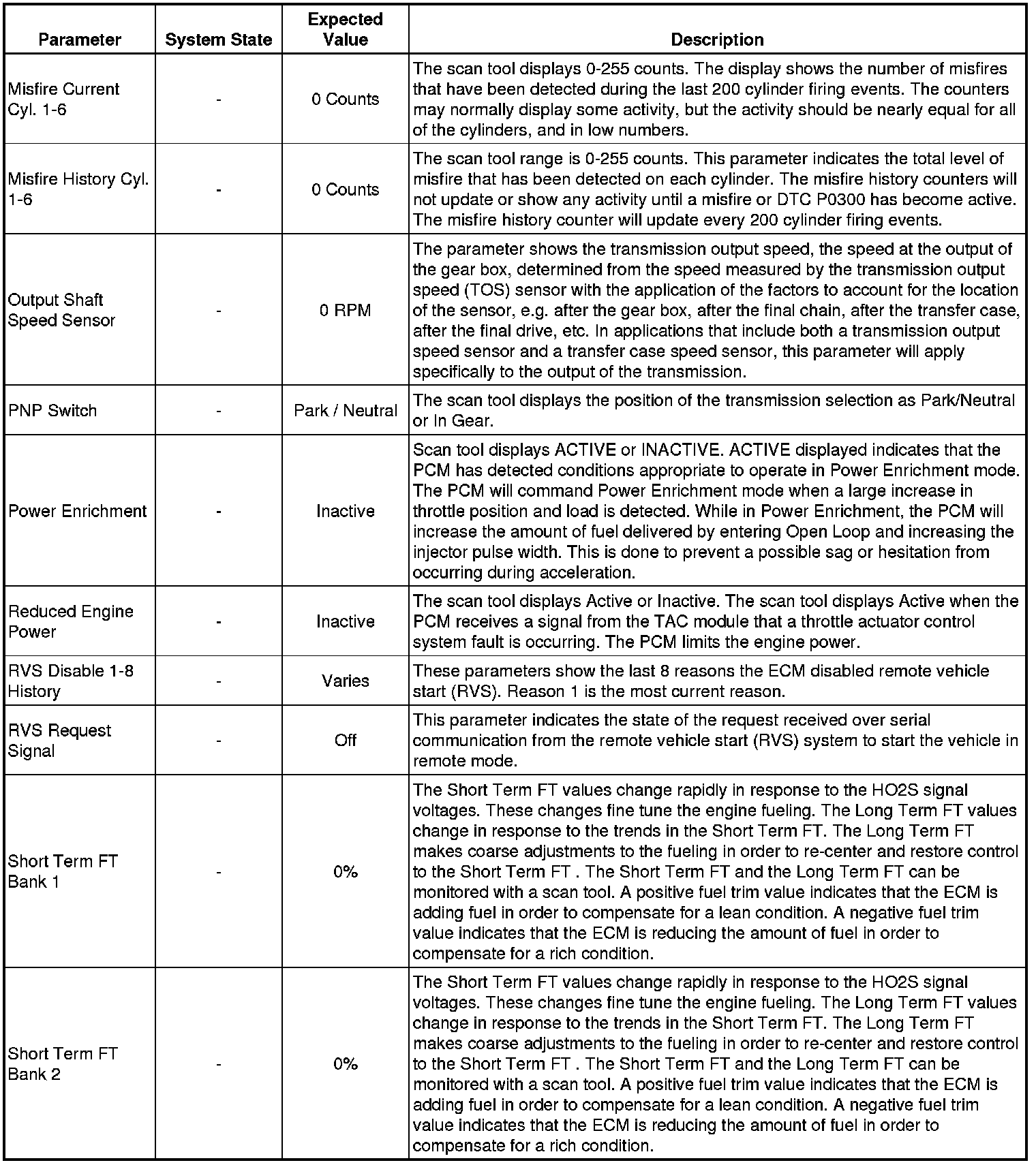 The Engine Control Module Scan Tool Data List contains all engine-related parameters that are available on the scan tool. The list is arranged in alphabetical order. A given parameter may appear in any one of the data lists, and in some cases may appear more than once, or in more than one data list in order to group certain related parameters together.