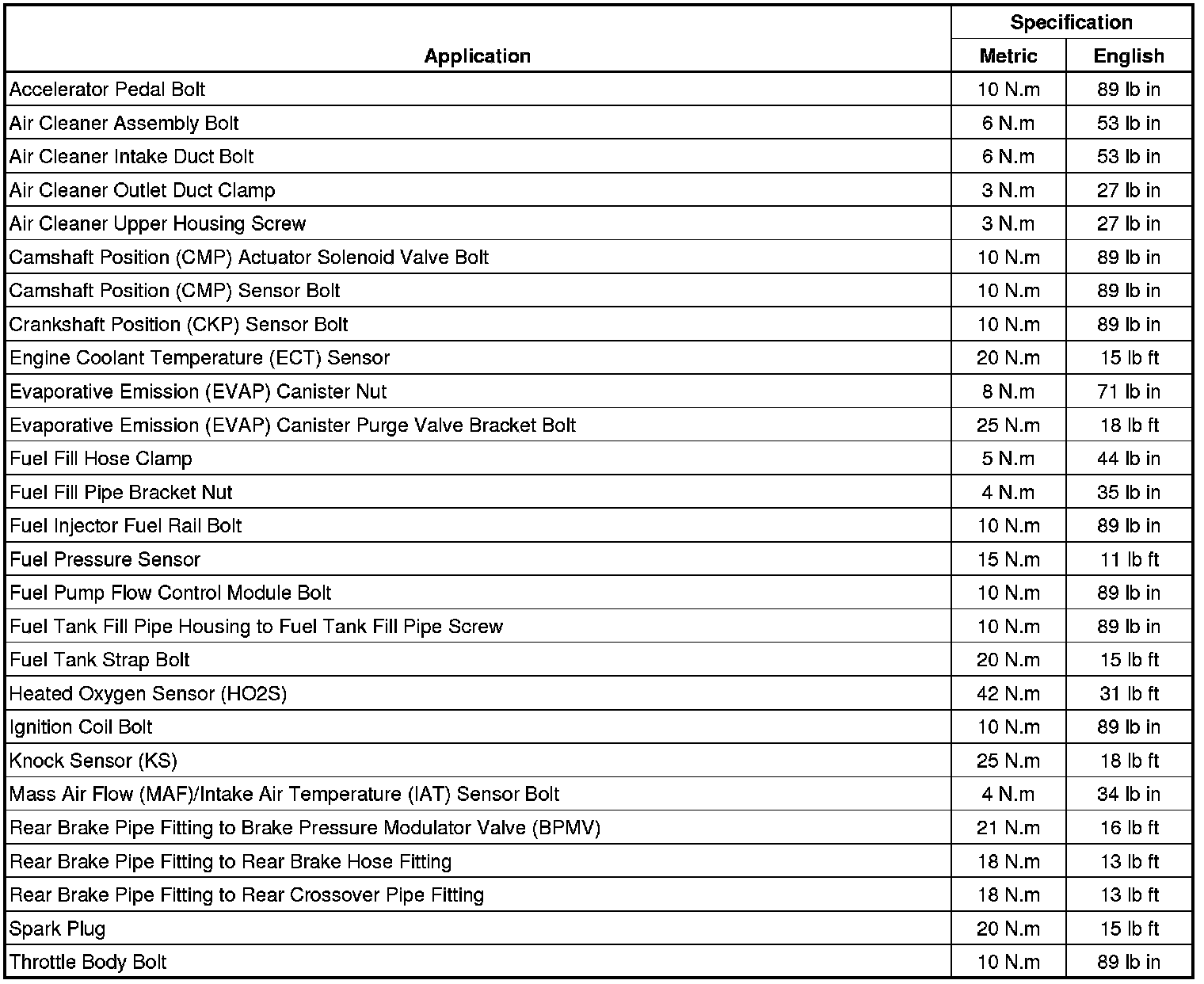 Fastener Tightening Specifications
