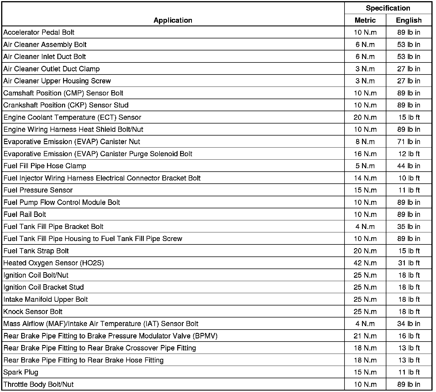 Fastener Tightening Specifications