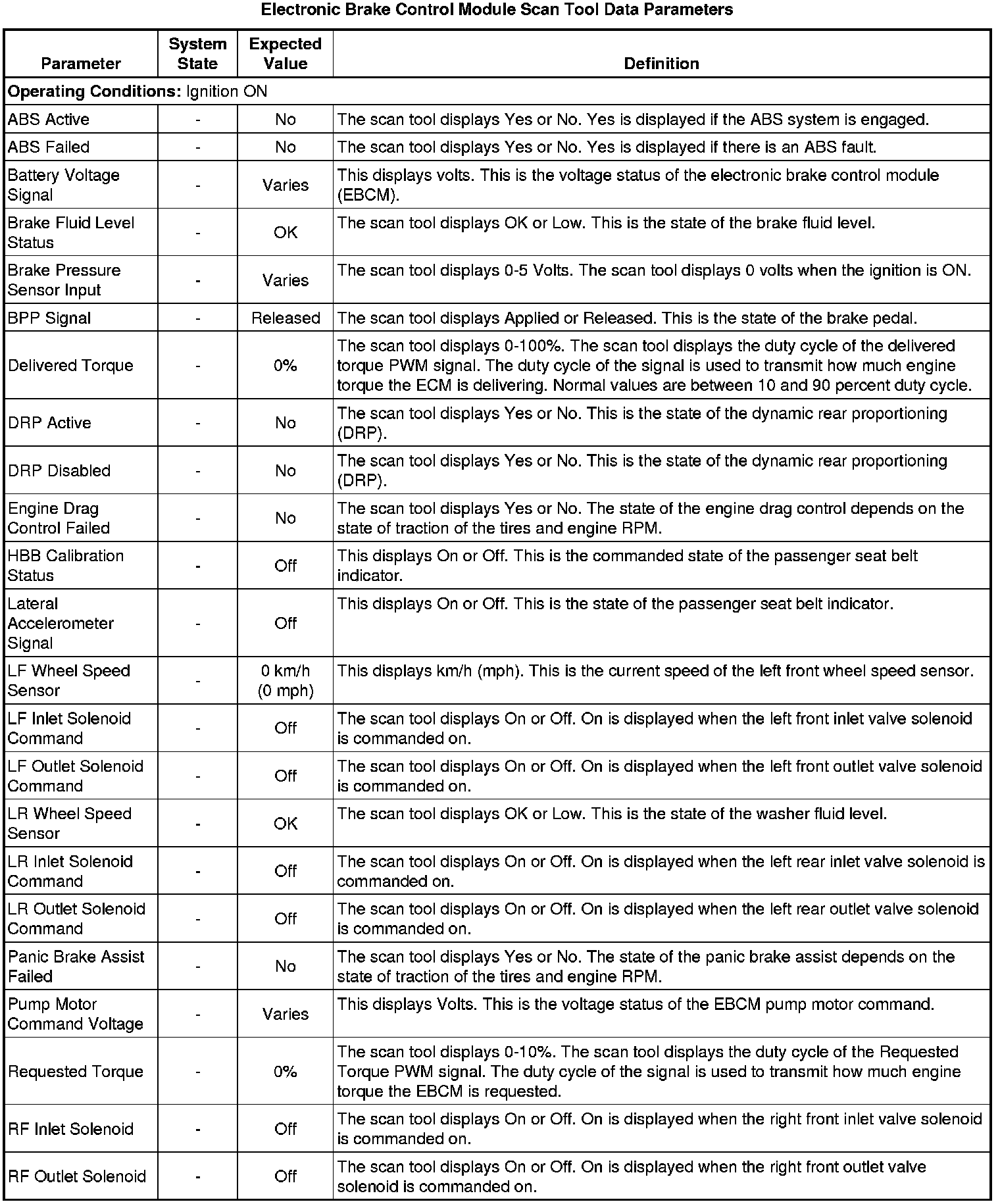 Electronic Brake Control Module Scan Tool Information