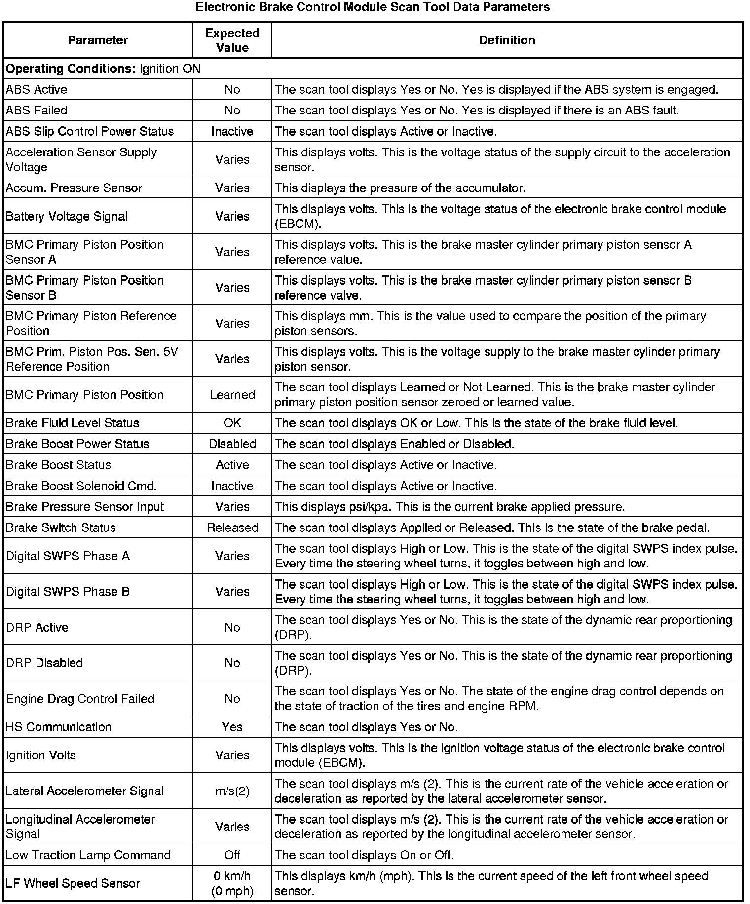 Electronic Brake Control Module Scan Tool Information