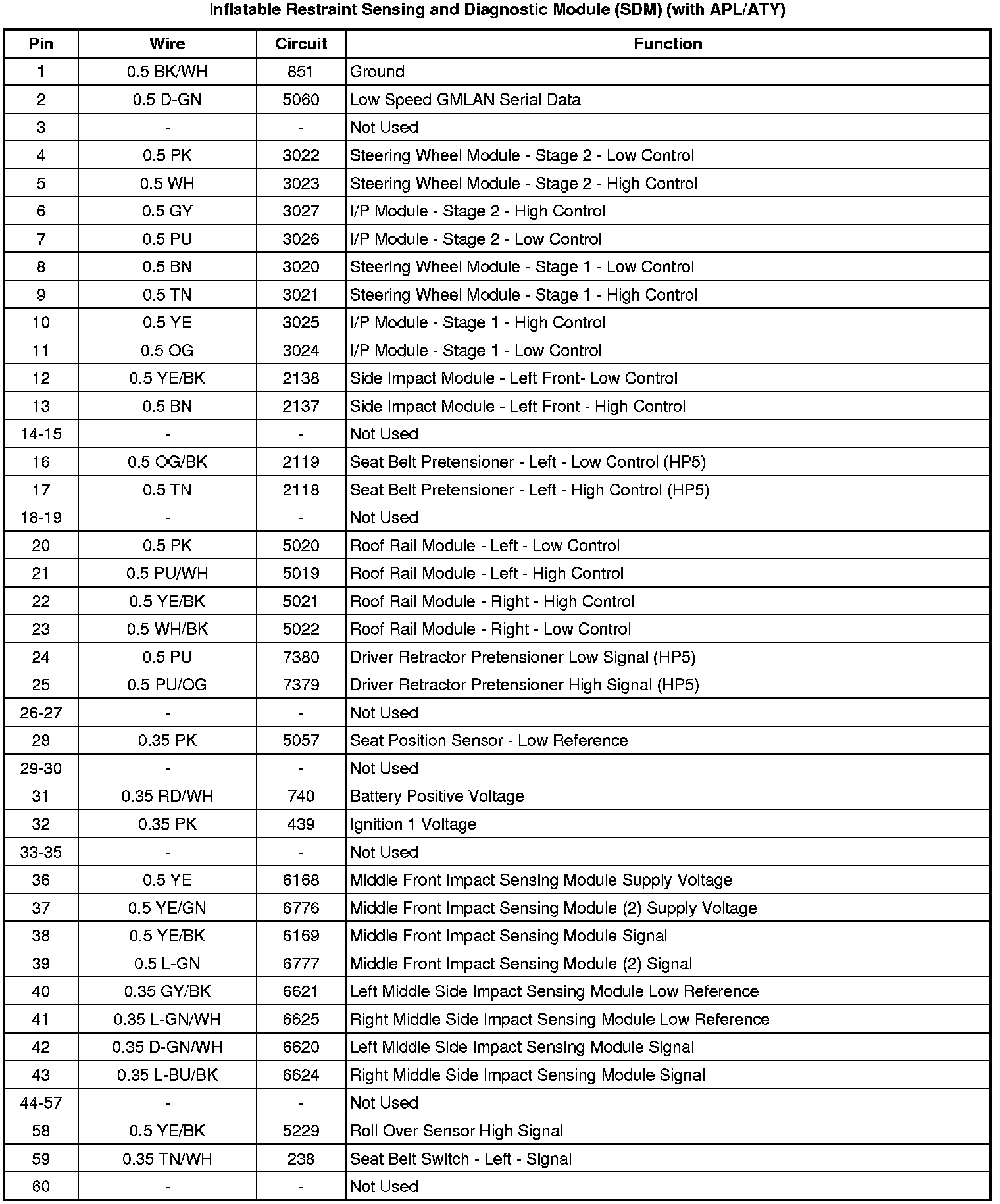 Inflatable Restraint Sensing and Diagnostic Module (SDM) (with APL/ATY)