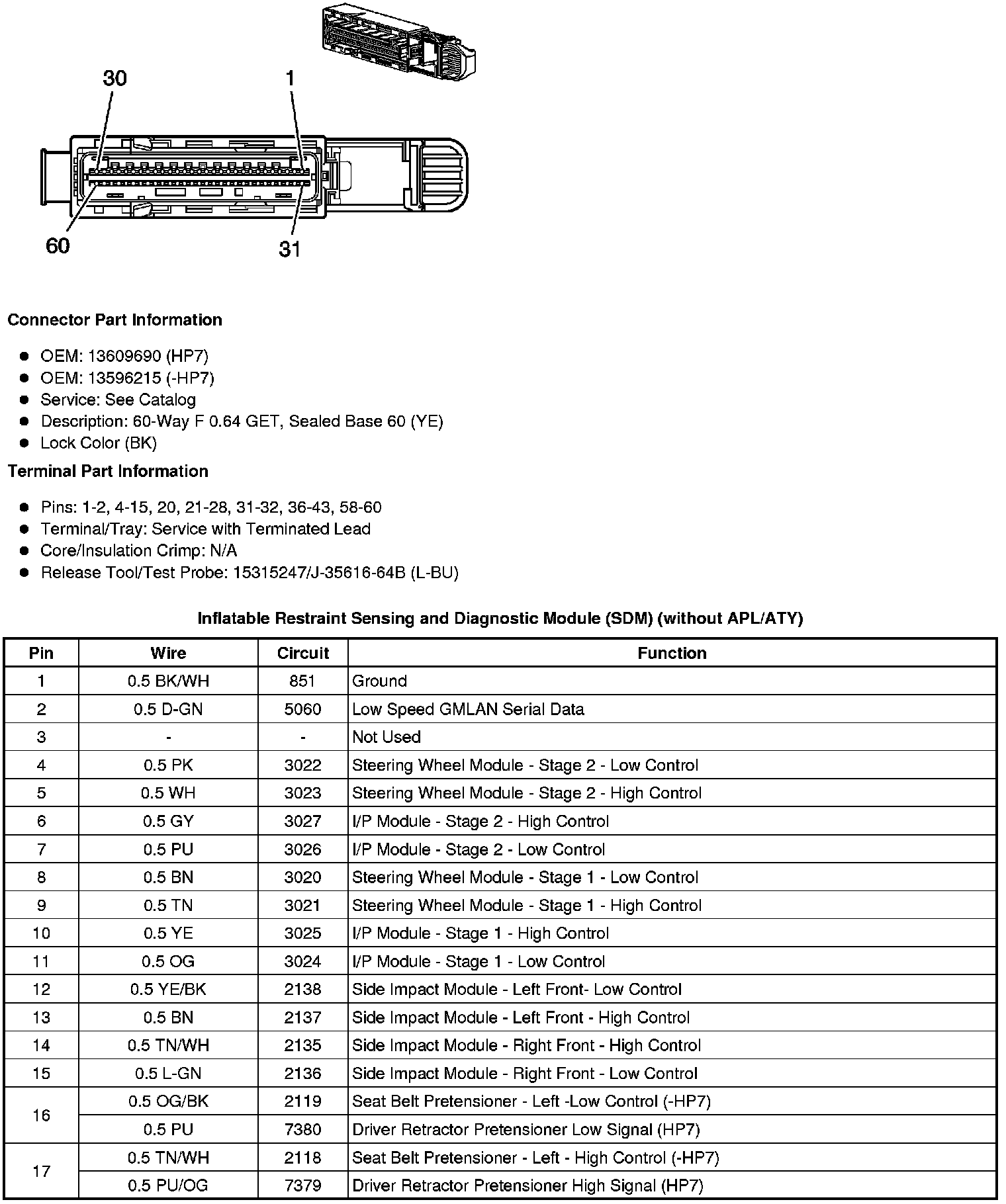 Inflatable Restraint Sensing and Diagnostic Module (SDM) (without APL/ATY)