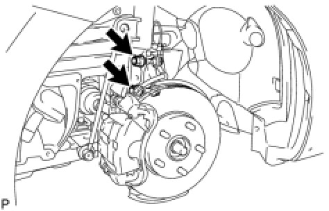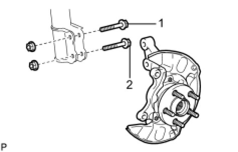 (o) Remove the 2 nuts on the lower side of the front shock absorber.
