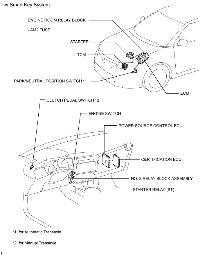 2AR-FE STARTING: STARTING SYSTEM: PARTS LOCATION