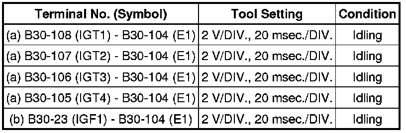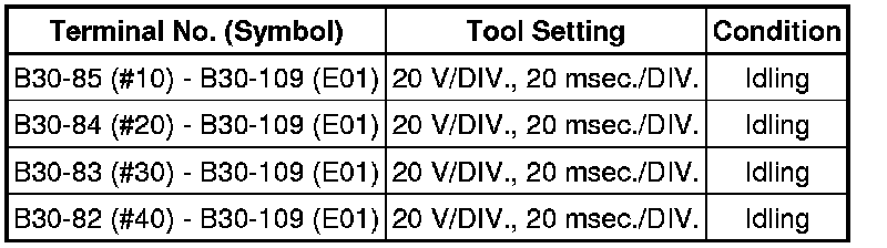 If the waveform is not similar to the illustration, check the waveform again after idling for 10 minutes or more.