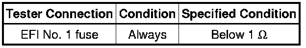 If the result is not as specified, replace the EFI No. 1 fuse.