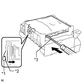 (a) Press the claw of the junction block as shown in the illustration to release the lock.