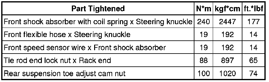 SPECIFICATIONS: ALIGNMENT / HANDLING DIAGNOSIS: TORQUE SPECIFICATIONS