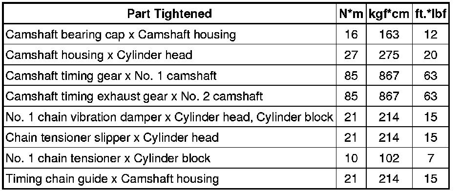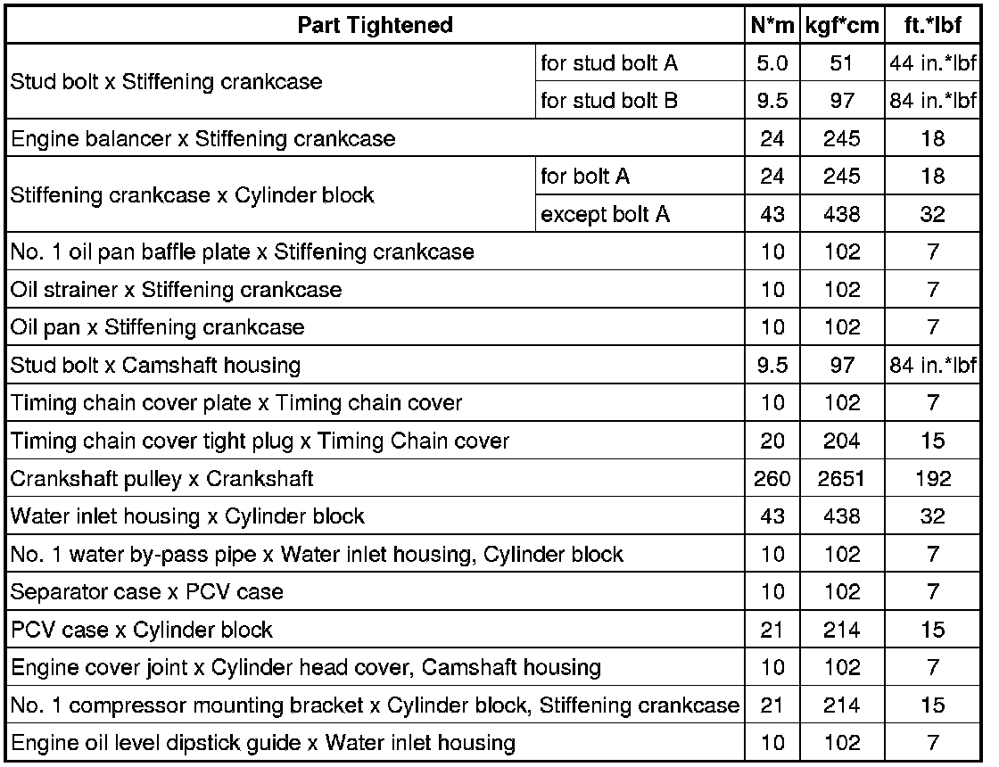SPECIFICATIONS: 2AR-FE ENGINE MECHANICAL: TORQUE SPECIFICATIONS