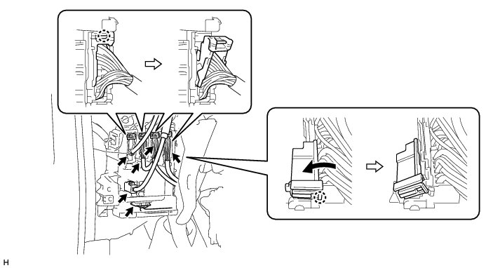 (a) Press the claw of the junction block as shown in the illustration to release the lock.