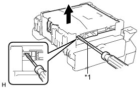 (c) Using the screwdriver, carefully raise the multiplex network body ECU until the connector becomes disengaged.