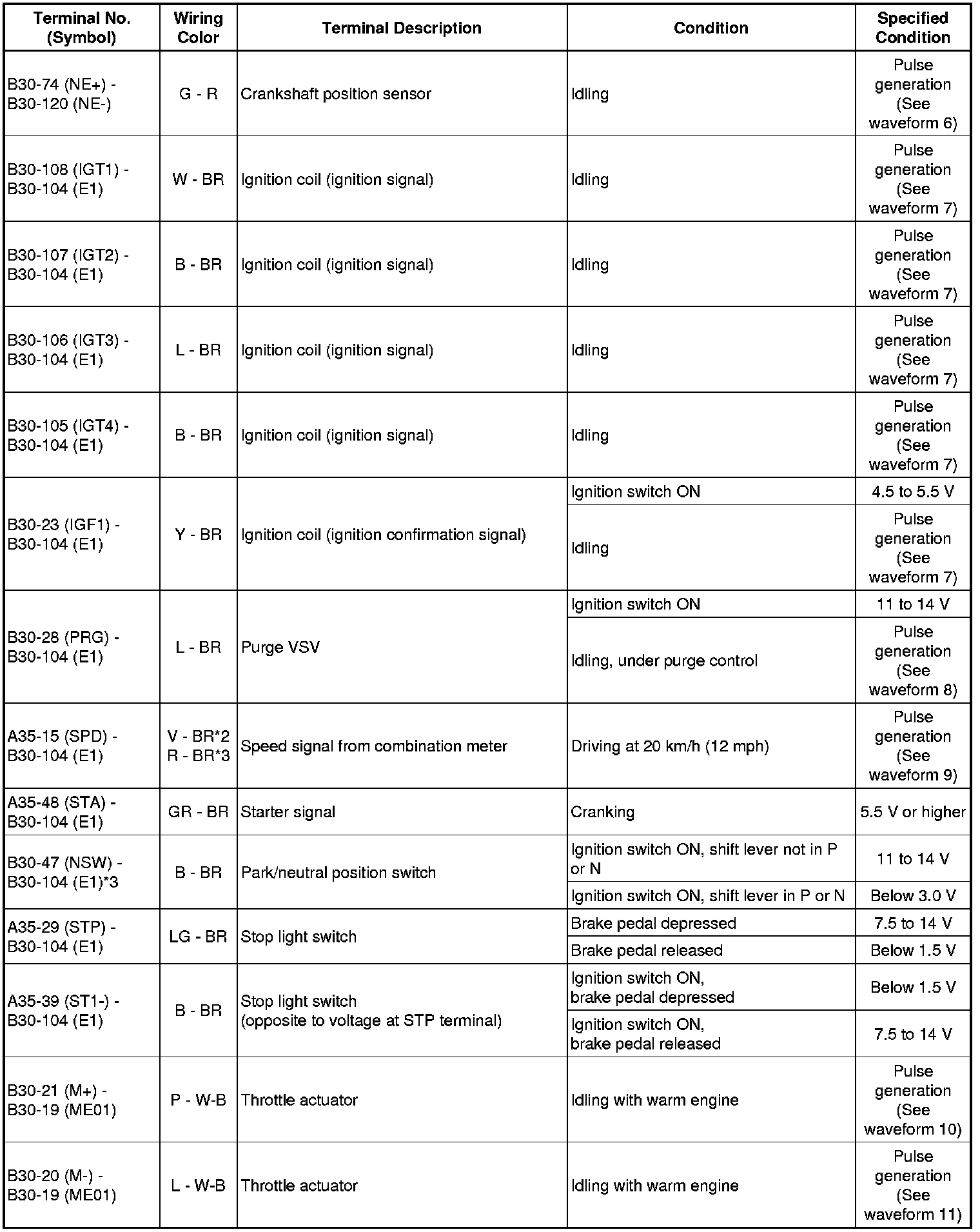 Home >> Scion >> 2012 >> tC L4-2.5L (2AR-FE) >> Repair and Diagnosis >> Powertrain Management >> Computers and Control Systems >> Engine Control Module >> Testing and Inspection >> Pinout Values and Diagnostic Parameters