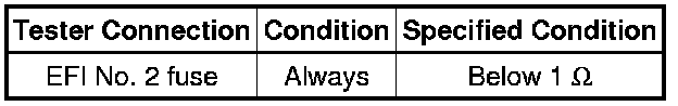 If the result is not as specified, replace the EFI No. 2 fuse.