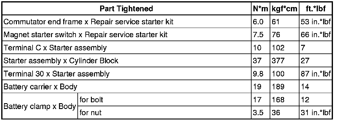 SPECIFICATIONS: 2AR-FE STARTING: TORQUE SPECIFICATIONS