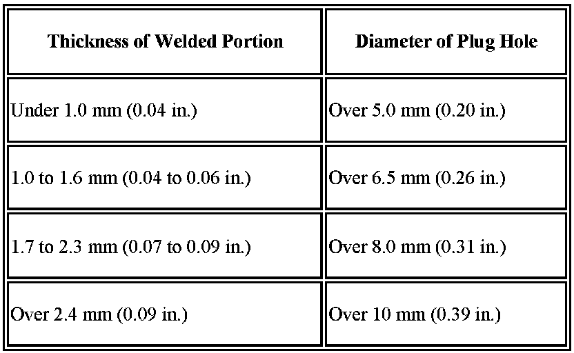 a. For areas where a spot welder cannot be used, use a puncher or drill to make holes for plug welding.