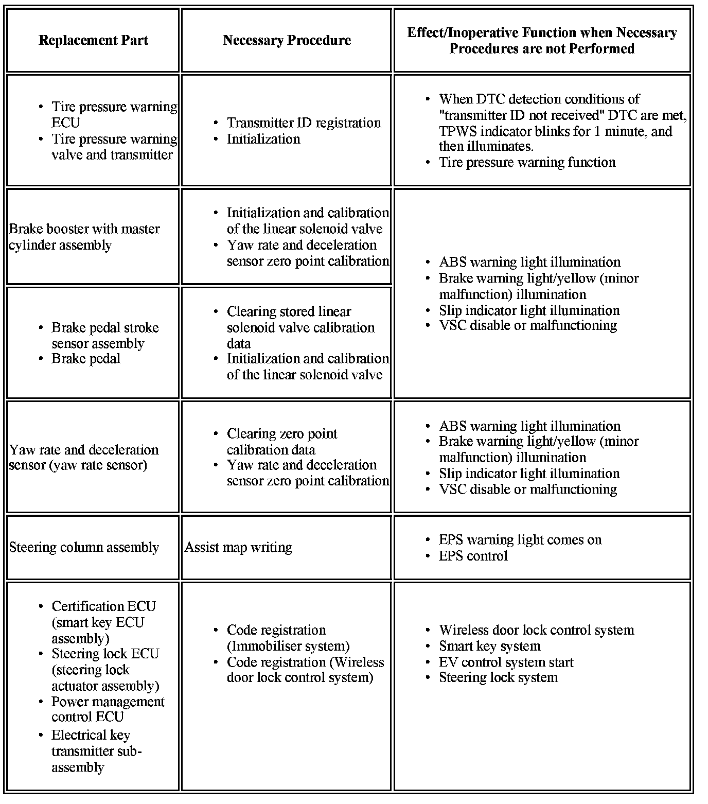 PROCEDURES NECESSARY WHEN ECU OR OTHER PARTS ARE REPLACED