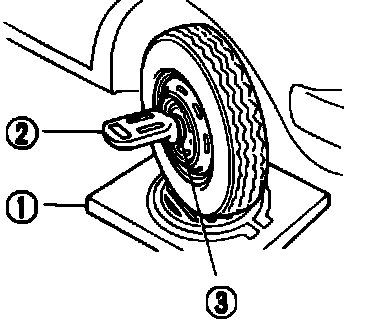 1. Raise front of vehicle and position turning radius gauges under front wheels, then lower vehicle.