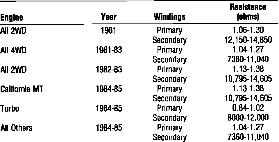 Fig. 6 Ignition Coil Specifications: