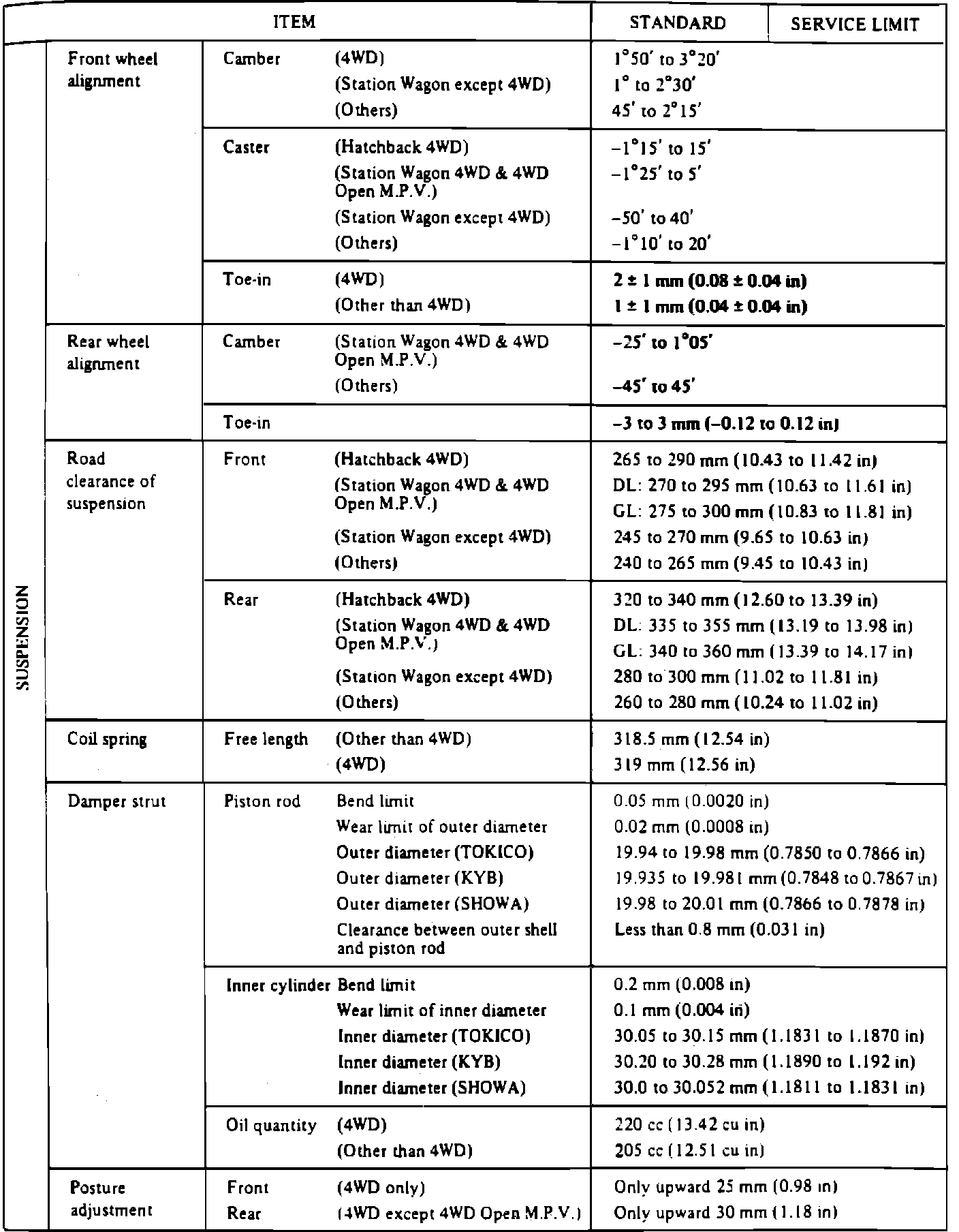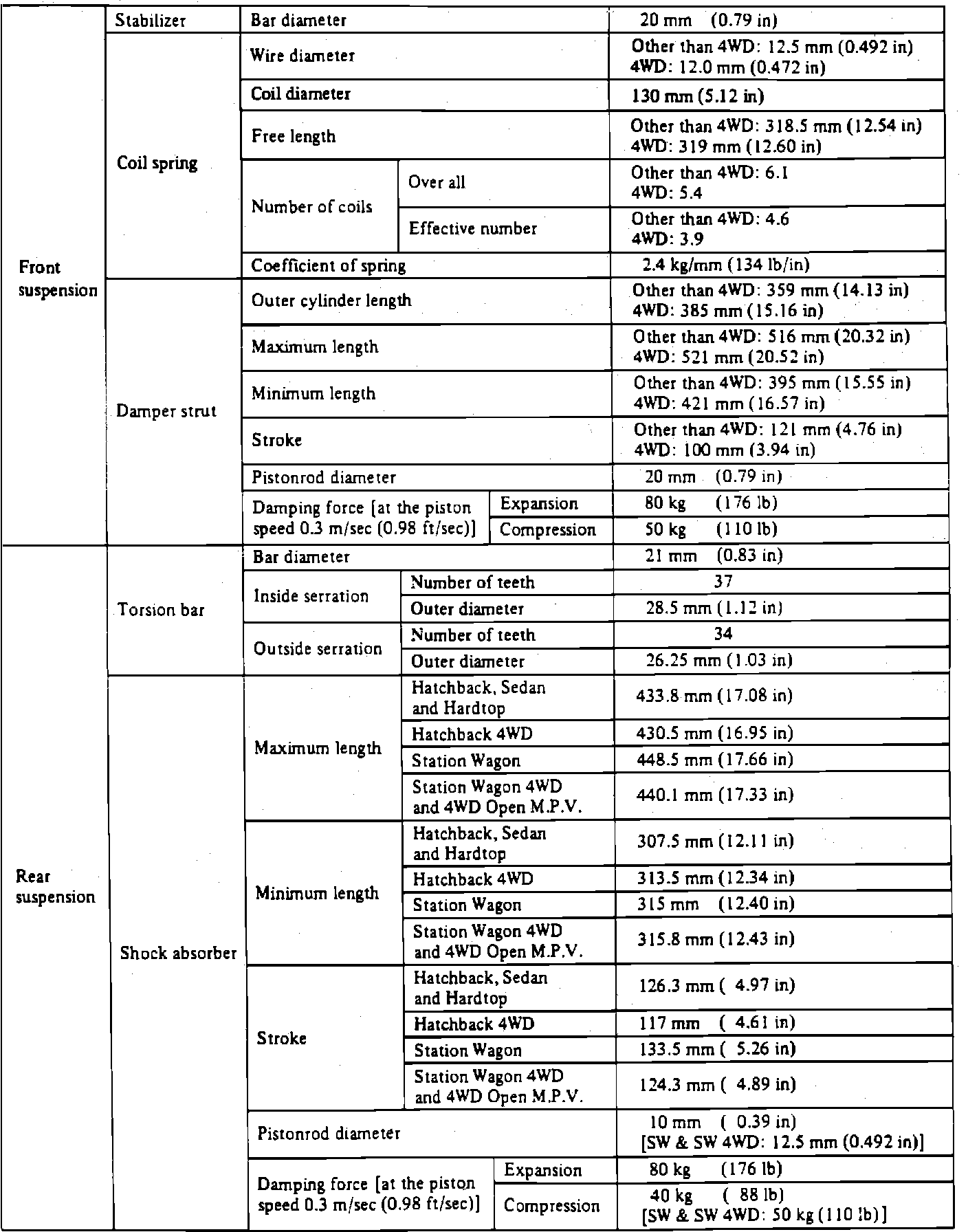 Suspension Specifications: