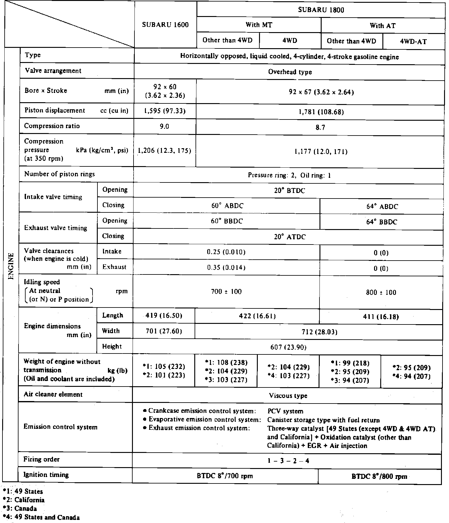ENGINE SYSTEM SPECIFICATIONSEngine Specifications: