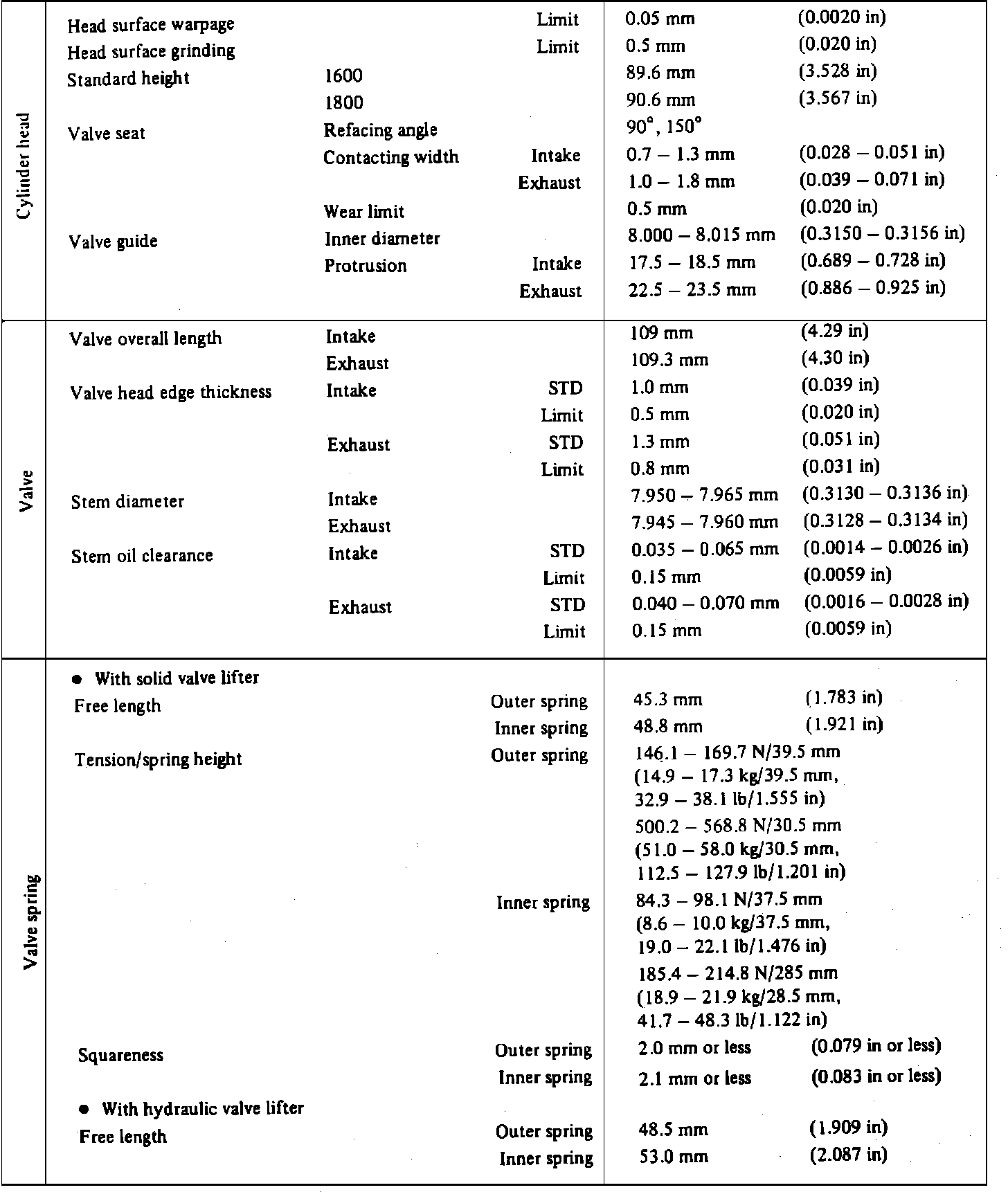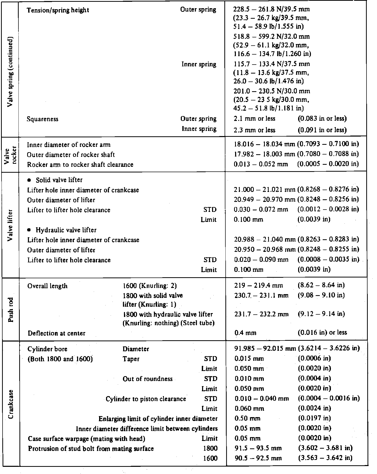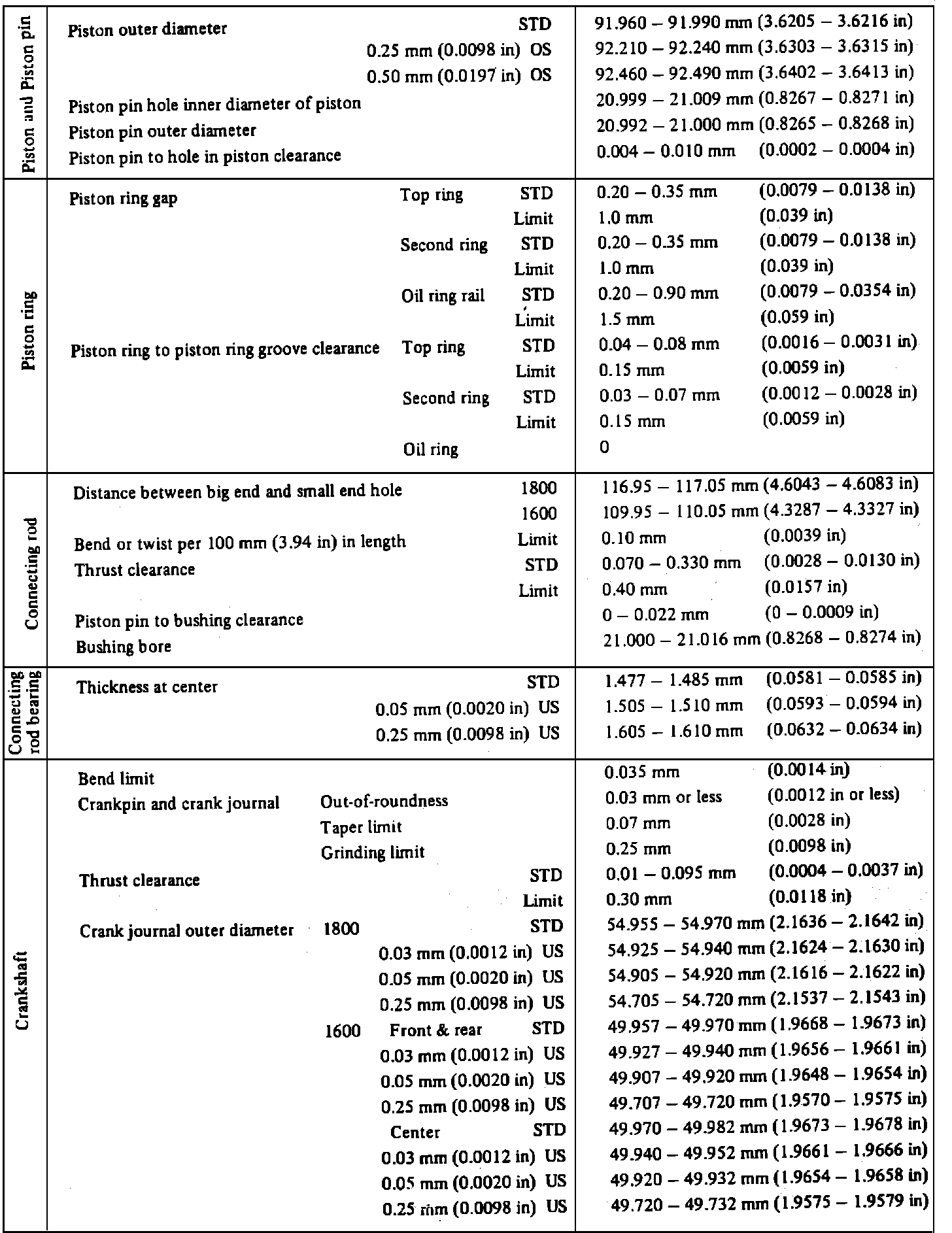 Engine Service Data (Crankshaft, Camshaft & bearings):