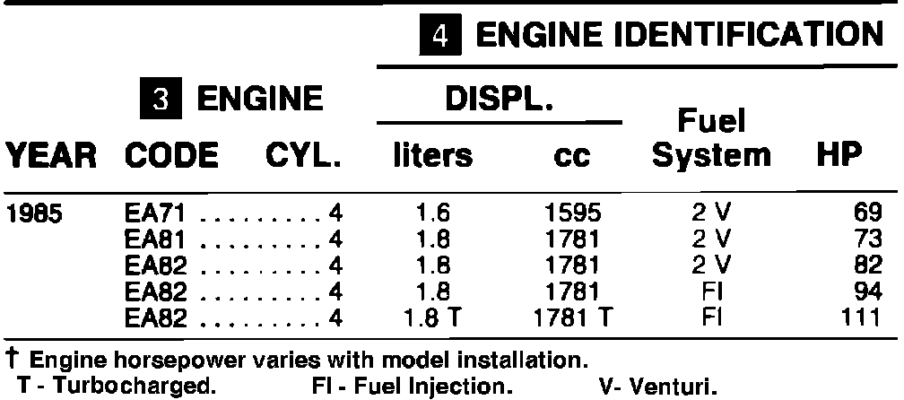 To identify an engine by the manufacturer's code, follow the four steps designated by the numbered blocks.