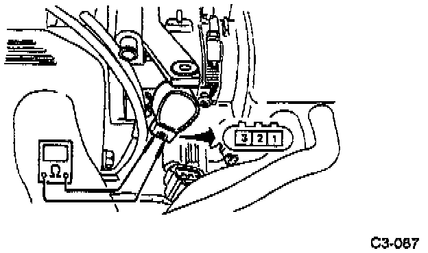 4. Measure resistance between terminals while slowly opening throttle valve from the "close" position.