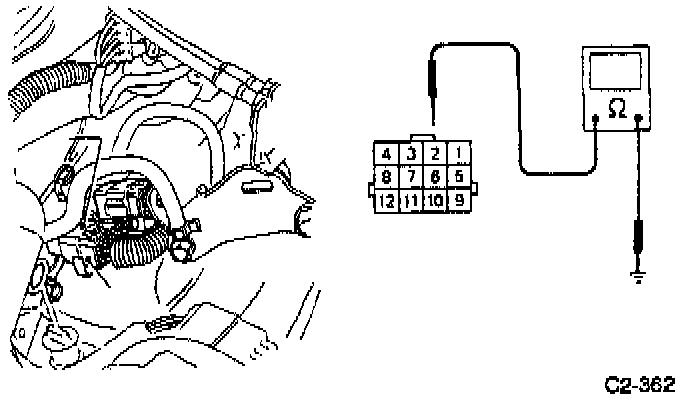 3) Measure resistance between inhibitor switch terminal in connector (T1).