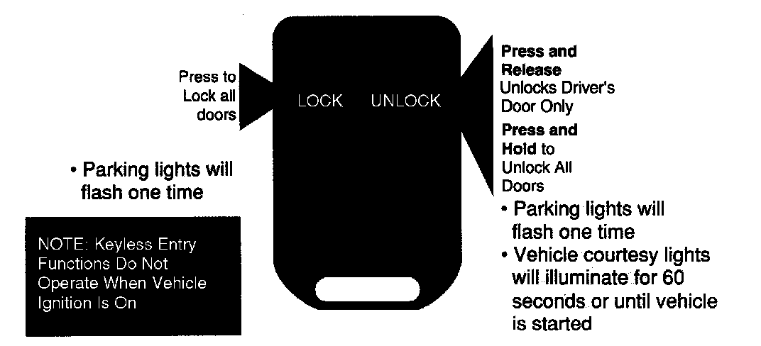 NOTE: Make sure no one is operating another keyless entry or security system within range of your vehicle when you are programming remote transmitters. Another transmitter code could be inadvertently "learned" by your system, allowing someone unauthorized access to your vehicle.
