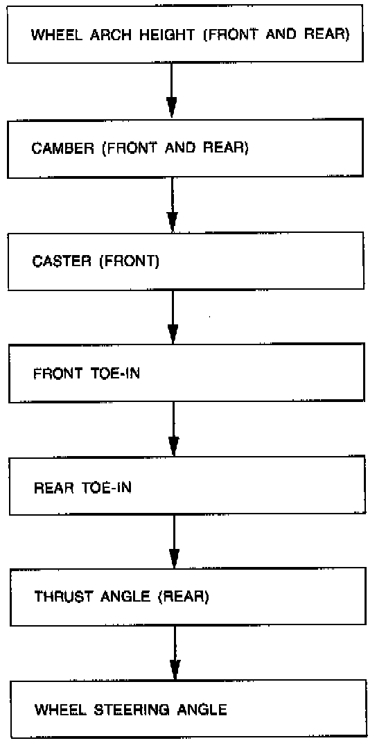 WHEEL ALIGNMENT PROCEDURESCheck, adjust and/or measure wheel alignment in accordance with procedures indicated in figure.