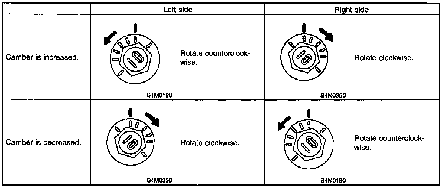 b. Turn camber adjusting bolt so that camber is set at the specification.