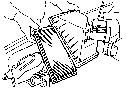2) Loosen clamps which connect air intake duct to air intake chamber and mass air flow sensor.
