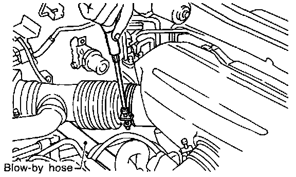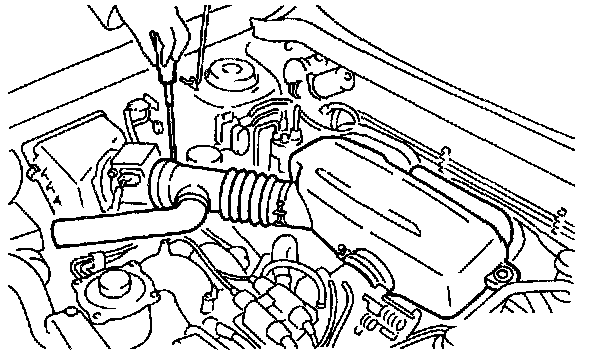 2) Loosen clamp which connects air intake duct to mass air flow sensor.