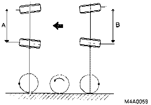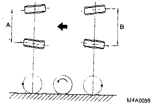 2. Mark rear sides of left and right tires at height corresponding to center of spindles and measure distance "B" between marks.
